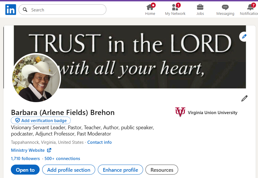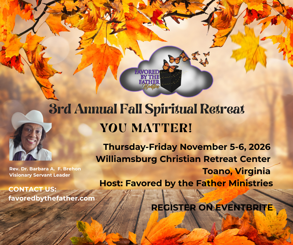 Rev. Dr. Barbara A. F. Brehon is a spiritual body builder. She is a pastor, preacher, teacher, bestselling author, podcaster, and public speaker. In addition to ministering via Favored by the Father Ministries, she currently serves as the Associate pastor of Beulah Baptist Church, Adjuct Professor (discipleship) at the Virginia University of Lynchburg, Past Moderator of the Southside Rappahannock Baptist Association, a member of the conference and retreat planning committee of the Baptist General Convention of Virginia. Dr. Brehon has recently been appointed as the National Singles Coalition Coordinator to nurture singles nationwide and globally.