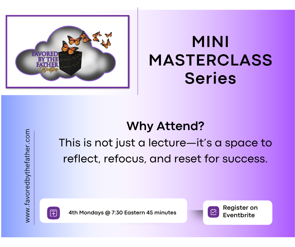 The Mini Masterclass Series offers focused, 45-minute teaching experiences designed to create space for reflection, refocus, and intentional growth. More than a lecture, each session invites thoughtful engagement, practical insight, and spiritual grounding to support clarity for the journey ahead. Mini Masterclasses on several topics are tailored to help you grow in God’s grace.